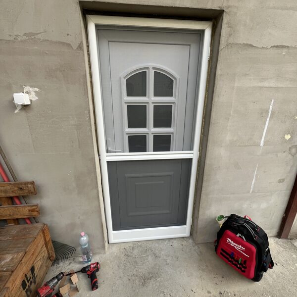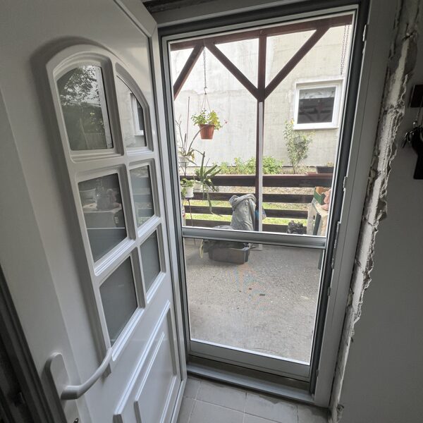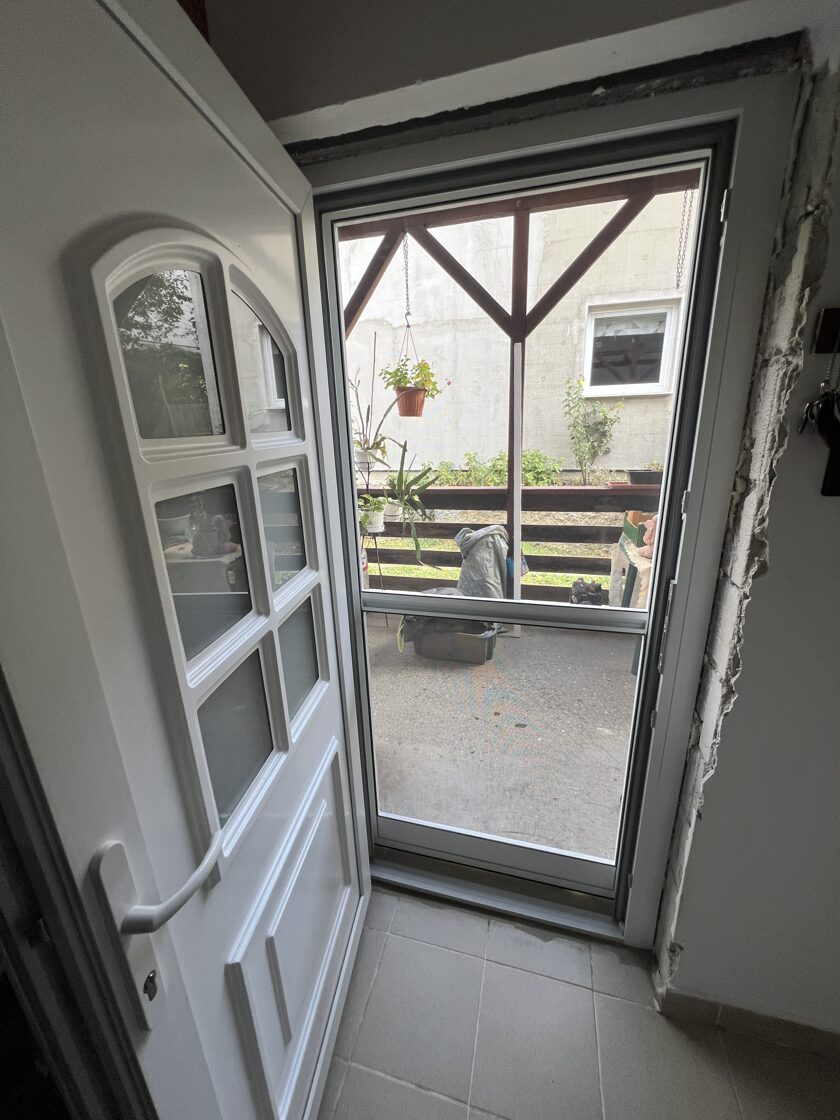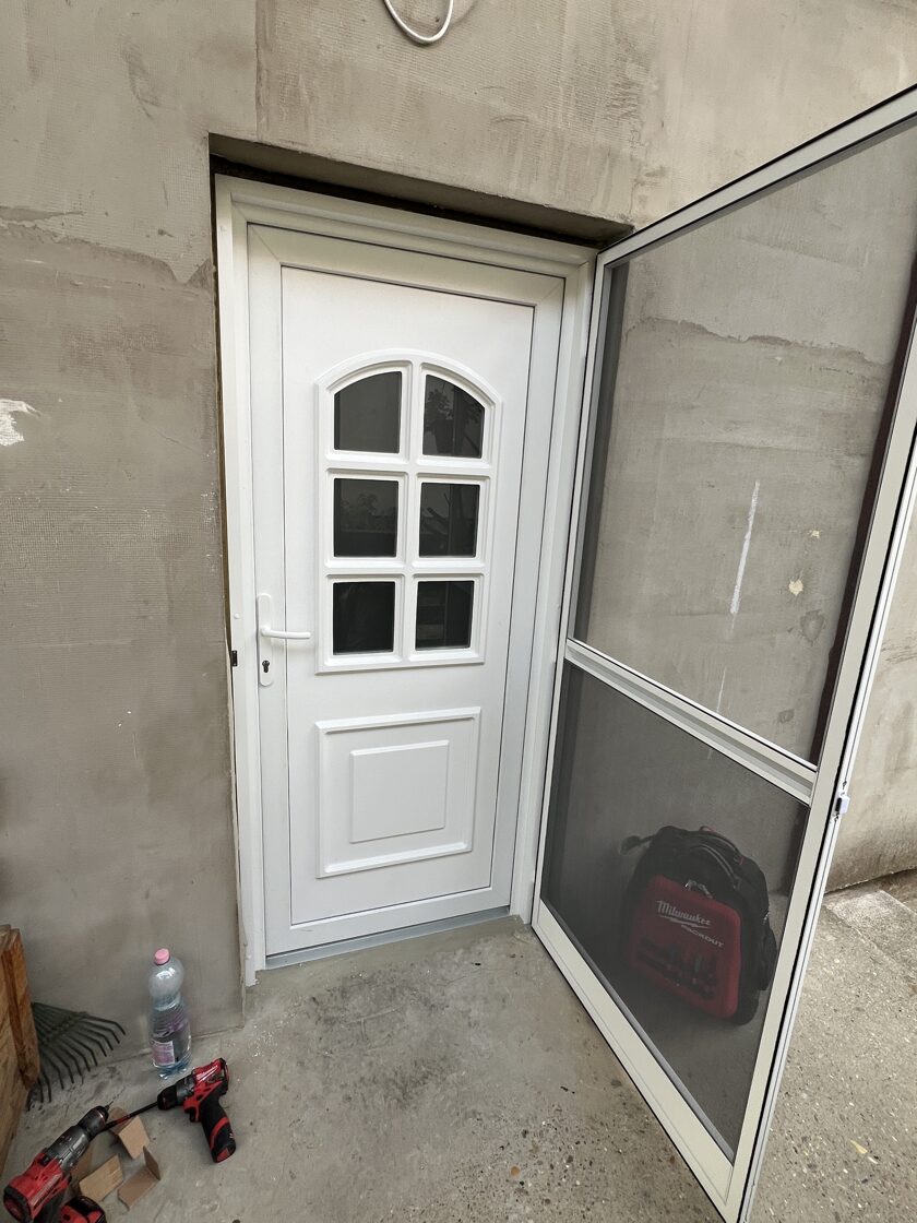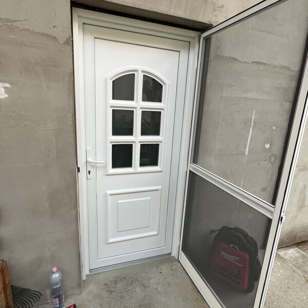 2 db ajtó csere történt és kutya hálós szúnyogháló ajtó telepítése kiemelő kerettel.